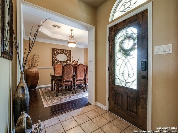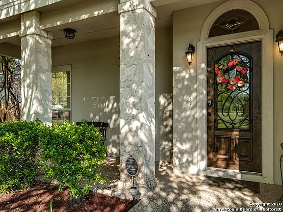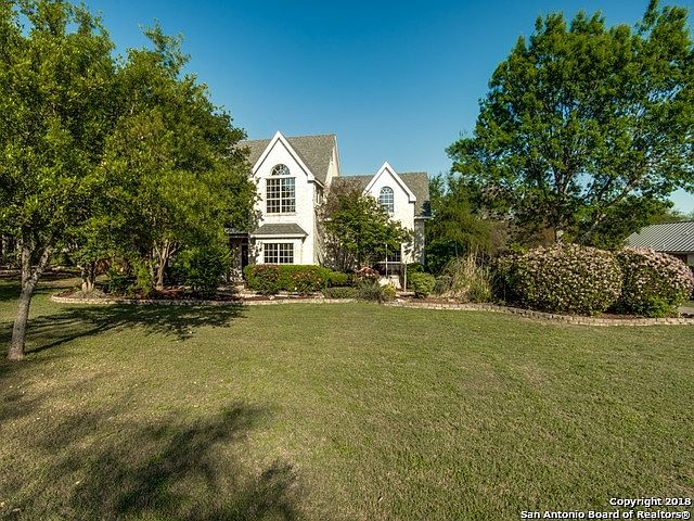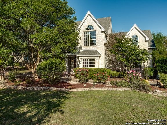 Grand private country living on 1.01 acres in highly sought after Helotes community. Elegant home in beautiful gated community. 4 bedrooms, 2 Mstr. suites, all bedrooms upstairs, 3.5 baths, 2 balconies w/awesome views, custom kitchen w/stainless appliances, built in double ovens, granite countertops, custom cabinets & island gas cooking..Eat in kitchen with relaxing views of lush backyard. Large covered patio.. extended driveway for additional parking, minutes from LaCantera shopping.
