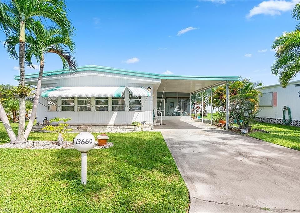 Welcome to Sunshine Mobile Village. This expansive 2 bedroom, 2 bathroom manufactured home sits in once of the most sought after locations in Southwest Florida. Less than 7 miles from our world famous Sanibel beaches and within walking distance to some of the best shopping around, you're close to everything! The home itself, constructed in 1977, offers one of the most popular layouts in the development. With an open living space, large bedrooms, laminate flooring throughout, and a gorgeous lanai, this floor plan lives very comfortably. Very well maintained this home offers all you could ask for. With low HOA fees and beautiful amenities including a pool, shuffle board courts, and a community center with events and gatherings regularly, you'll love the lifestyle offered here!