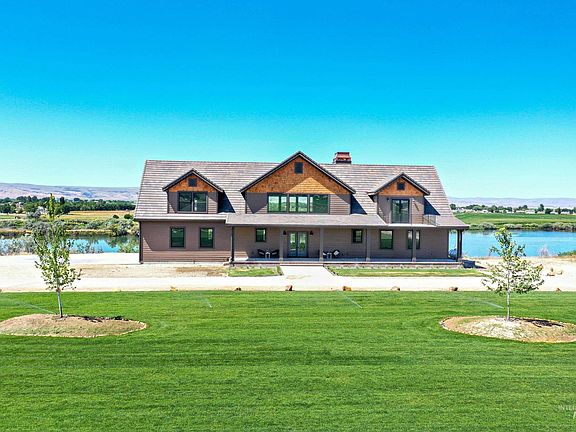 This is an exquisite home in a picturesque setting on the banks of the Snake River providing direct river access and inspiring views overlooking the Owyhee Mountains. This home has been meticulously crafted with its surroundings in mind. Inside you will find 6,400 Square feet of living space stretched across a sprawling open floorplan featuring 20-foot ceilings and a sophisticated design. The list of luxuries includes a grand kitchen with designated prep space, patio heaters to keep you warm on those cool evenings, and a guest suite appointed with its own full kitchen & bathroom. The HVAC & water heater feature a solar heating system that is highly efficient and there is a potential tax credit for the buyer. The location within the Snake River Valley American Viticultural Area, places you along the Sunnyslope Wine Trail surrounded by vineyards, orchards, and acres of some of the most scenic farmland in the Northwest.
