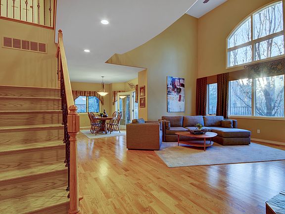 A rare opportunity to purchase a custom home in the highly sought after community of Country Estates. A gorgeous remodel with many architectural elements including: dramatic entry, a towering wall of windows, soaring ceilings, open staircase, guest bedroom on-suite, jack and jill bath, and spacious floor plan. Designer touches throughout touting: gleaming hardwood floors, wrought iron balusters, granite tile in entry and fireplace surround, coffered ceilings, custom window treatments, and updated lighting. Pristine & impeccable condition boasting pride of ownership including newer furnace, central air, carpet, exterior paint, interior custom paint, all new front concrete in driveway, 500 sq. ft. of expansive split level deck, private patio, and professional landscaping. Luxury touches throughout include a chef’s kitchen with slab granite counter tops, custom cabinets, stainless steel appliances, under cabinet lighting, and deep, walk-in pantry. Master suite bathroom has been remodeled with glass shower enclosure, custom tile, solid counter tops, new hardware, and custom built-ins in large, walk-in closet. Fully finished basement with large family room, media room, exercise room, and guest suite to include large bedroom and additional bath.