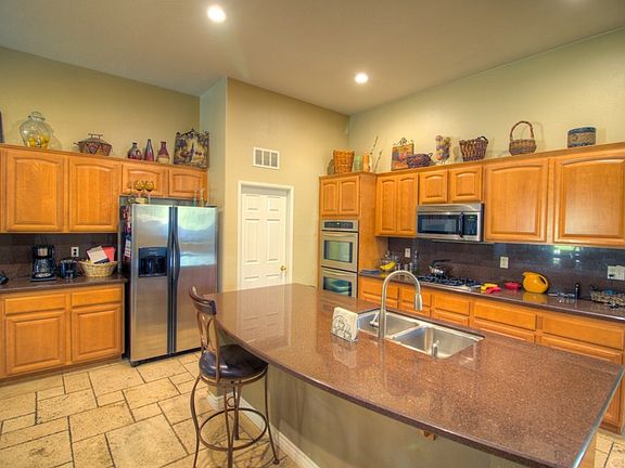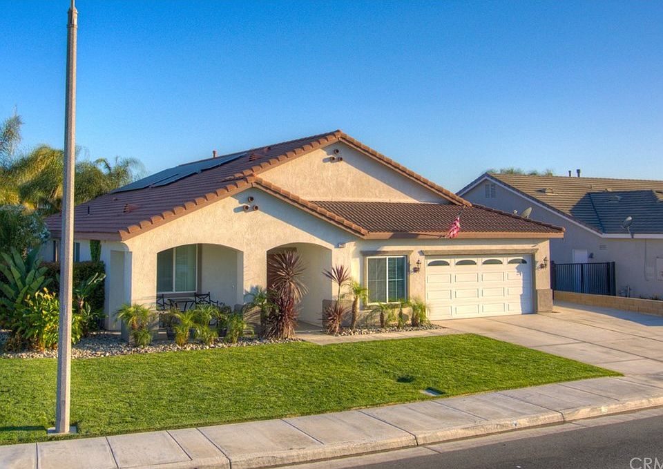 Welcome to the City of Eastvale! This beautiful single story home features a fabulous open floor plan, swimming pool, and a generous lot size that is not easy to find (just under 10,000 sq ft) ! The kitchen is perfect for entertaining with its granite kitchen counter tops, kitchen island, and stainless steel appliances. Travertine floors take you from the entry to your family room where a well designed floor plans has the master bedroom and bath on one side of the home and all secondary bedrooms on the other side. Master bedroom boasts sliding glass door to the backyard and an amazing custom closet system. The backyard is ready for your summer BBQ's with a beautiful built in gas BBQ, mini fridge, ceiling fans, and Bluetooth surround sound system. As if this isn't enough, the yard is complete with a swimming pool, ample grass area, and plenty of room to park/store your toys on the side of the home. You will fall in love with this charming home and highly desired floor plan!