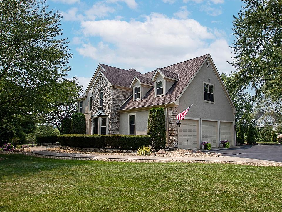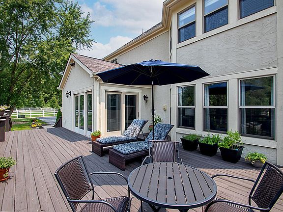 Welcome home to this stunning two story that is situated on over 2 acres of land w/ an amazing setting. This beautiful entryway is so eye catching w/ the beautiful staircase that overlooks the lg den w/ amazing built-ins. The dining rm features ample space for entertaining! The gorgeous kitchen boasts upgraded cabinetry, granite, sub zero app, & a lg eating sp. The family rm boasts stunning wood flooring, natural light, stone fp & addit'l built-ins! Lg bedrooms & updated baths. Owners suite offers heated floors, upgraded shower, foot spa, double vanity & more! Spend your days on the stunning, tiered deck & patio w/ a stone, propane fire pit, raised gardens, & new landscape. The walkout basement offers a lg space for entertainment, built in bar, & stone fp! So amazing and too much to list!