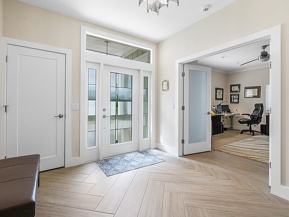 Discover modern luxury in this fully renovated 3-bedroom, 3-bath home with additional den, and formal dining, set in the sought-after Eastpointe Golf Course Community. Walking distance from the brand new clubhouse, this open-concept layout allows for seamless flow between living spaces, maximizing natural light and enhancing the home's contemporary feel. Detailed finishes like the waterfall island in the kitchen, and herring bone tile pattern in the entry can be found throughout the home. This stunning property boasts impact glass throughout, providing peace of mind and a stylish touch. With a prime location in this exclusive community, you'll enjoy both a tranquil setting and vibrant amenities. Eastpointe Country Club boasts 2 Fazio-designed golf courses, 2 clubhouses, a resort-style pool area, tennis courts, pickleball , state-of-the art gym, and fantastic cuisine!