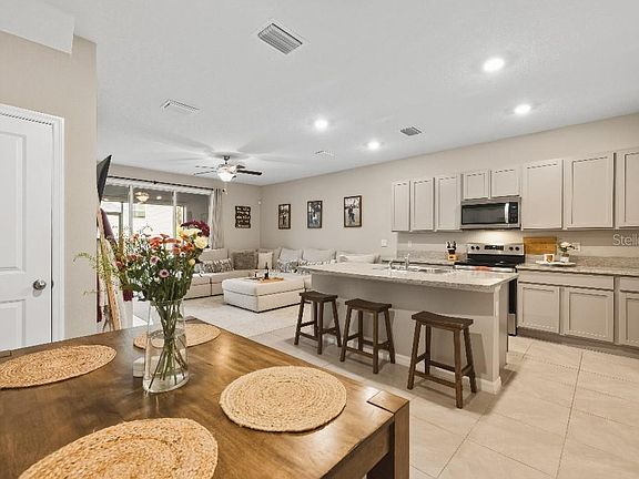 Experience refined living in this stunning townhome located in Newberry. The open floorplan welcomes you with abundant natural light and stylish finishes throughout. The gourmet kitchen features granite countertops, stainless steel appliances, and a spacious island perfect for gathering with family or friends. Enjoy seamless indoor-outdoor living with sliding doors that open to a private screened lanai overlooking peaceful green space, a perfect spot to unwind or entertain. Upstairs, the primary suite offers dual walk-in closets and a spa-inspired bathroom with double vanities and a walk-in shower. Two additional bedrooms share a beautifully designed full bath, and the laundry area is conveniently located on the same level. Additional highlights include tile flooring throughout the main living area, a one-car garage, and professionally maintained landscaping. Perfectly situated near shopping, dining, and major routes, this home offers an ideal blend of comfort, style, and convenience. Welcome home.