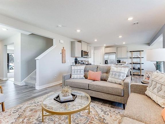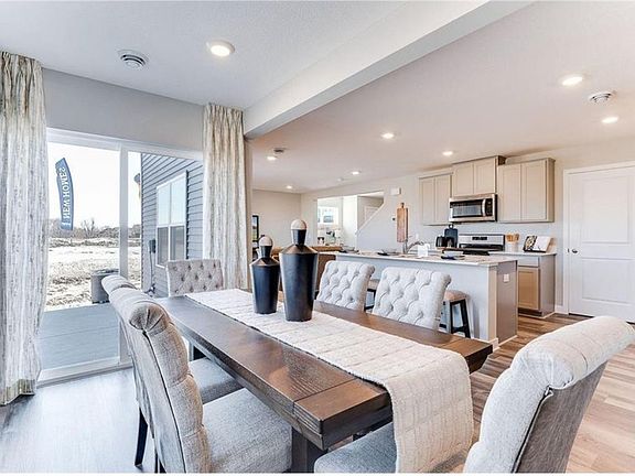 Move into a brand-new twin home at Grass Lake Preserve in Rogers. The main level features an open-concept kitchen with quartz counters and stainless appliances, dining area, and living room that steps out to a patio/yard overlooking a pond. Upstairs you'll find a spacious primary suite with walk-in closet and double vanity, three additional bedrooms, a full bath, a big loft and laundry. An attached 2-car garage, private entry, and smart-home controls (thermostat, garage, and front door) make everyday living easy.