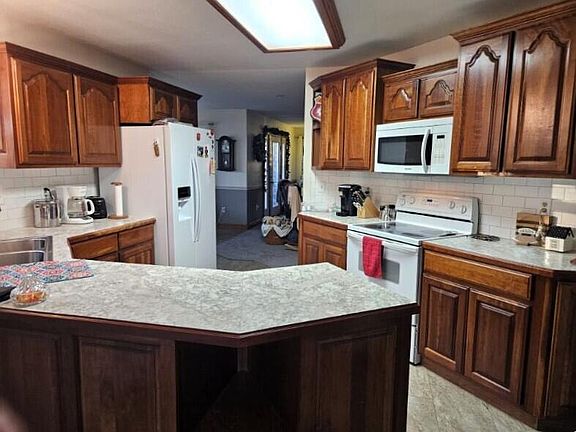 - Included: Electric Cooktop, Dishwasher, Disposal, Electric Water Heater, Exhaust Fan, Free-Standing Electric Oven, Microwave, Refrigerator, Water Softener Owned