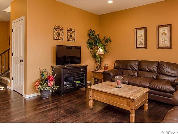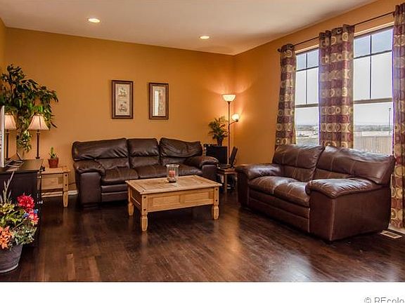 Better than new stunning 2-Story is waiting for you to call home! This gorgeous home resides in a brand new high demand neighborhood on an expansive premium corner lot! Privacy, and stunning views await! Dark stained solid hardwood hickory floors through out the whole main level, espresso colored maple cabinets and slab granite! Beautiful contrast of colors provides a warming atmosphere, and a spacious living space with open concept that is sure to please all Buyers. The large loft is the perfect spot for; kids hang out, quiet cozy reading area, or 2nd Family gathering space. Spacious Master Suite with beautiful shower tile work and walk-in Closet! Not to mention the view West out of the Master is pretty fantastic! Complete landscape is already done for you, huge bonus! Enjoy those amazing sunsets over the Rockies off the large covered trek deck out back, the perfect space for all those special occasions!