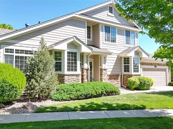 Don’t miss this lovely 2 Bedroom, 3 Bath, Townhome with a Main Floor Primary Bedroom in the desirable Broadlands Golf Course Community. This wonderful move-in ready home offers an open concept living & dining room, large windows, cozy gas fireplace, vaulted ceilings and neutral colored paint. The sunny eat-in kitchen offers plenty of cabinets with a separate desk nook making the perfect central spot to maintain your schedules and to-do lists. The Primary Suite is spacious with high ceilings, hardwoods, a large walk-in closet, linen closet, and 5-piece bath, brand new tiled flooring and a separate private commode. Upstairs you will find a second spacious bedroom with brand new carpeting, private ensuite bath and plenty of closet space. There is also a loft area that can be used for a home office, hobby room, TV room or additional sleeping space for guests. The large unfinished basement is great for seasonal storage or a canvas to finish as you wish. Enjoy morning coffee & an evening beverage on the back patio surrounded by mature trees and lush landscaping. This property offers ground level access, an attached 2 car garage that opens to the laundry/mud room with a utility sink and storage. Outdoor enthusiasts will appreciate the proximity to numerous bike paths and walking trails, including a quick trip to Plaster Reservoir. Take advantage of all of the amenities this community offers - the outdoor pool, indoor pool, weight room & clubhouse. Additionally, this location is convenient to Highly Ranked Schools, Grocery Stores, Restaurants, Banks and Rec Center just 5 mins away. HOA covers amenities, exterior maintenance, mowing, trimming, snow removal, trash/recycling. Easy access to Hwy 36 & I25 and the Airport. Don't miss this one!! If viewing on Zillow site, scroll down to "More Facts & Features" and click "Virtual Tour".