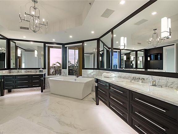 Amenities galore await in this high-rise condominium located on Wiggins Pass offering direct boat access to the Gulf of Mexico! This 3,940 square foot residence is not only in the newest tower but was recently upgraded with exquisite and timeless elegance (hardwood and marble floors throughout, Ruffino custom cabinets, designer lighting and custom closets). Enjoy the sunrise on the Eastern facing balcony with your favorite cup of Joe and watch the sunset overlooking the Gulf with a glass of wine from the living room, back lanai, kitchen or Master bedroom. A gourmet kitchen featuring quartz and granite countertops, Sub-Zero refrigerator and wine cooler, Wolf over-micro-convection and gas cooktop, plus a wet bare are a chef's delight, making this open floor plan great for guests. Live a resort lifestyle in this amenity rich community offering a gorgeous pool overlooking the bay, 23-hr. friendly concierge, fitness center, sky lounge, social rooms, virtual golf, recreation room, putting green Dog Park, Spa, outdoor cabana amenities, kayaking and paddle boarding. Information contained herein deemed reliable but not guaranteed