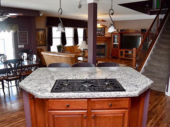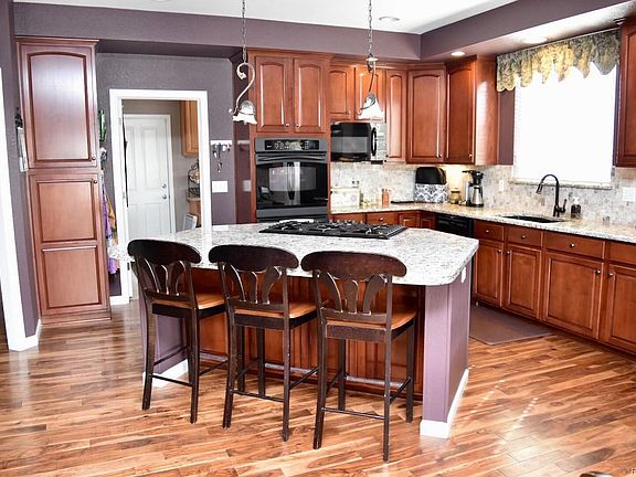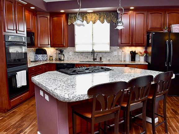 This home that will not disappoint! Exquisite detail throughout in this 6 bedroom, 5 FULL bath 2-story home in Homestead Hills! You will enter into an open foyer leading to large separate dining room with custom light fixture and large open family room with gas fireplace and acacia hard wood floors throughout! The kitchen is great for entertaining with eat in kitchen, large island with gas range, custom tile backsplash, double oven and much more! Upstairs you will find the master suite with 5 piece bath and huge walk-in closet and 3 additional bedrooms! Need some separation? Basement is fully finished with open rec area, 6th bedroom, full bath and craft/workout room! Buyers will enjoy the stamped concrete patio running the length of the house with mature, detailed landscaping and fully fenced yard. 3 car garage with entry to the house from both bays! Easy to show and sell!