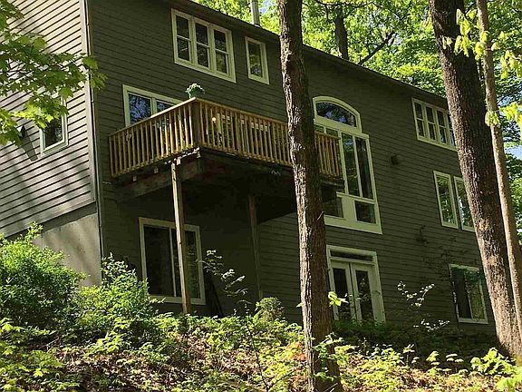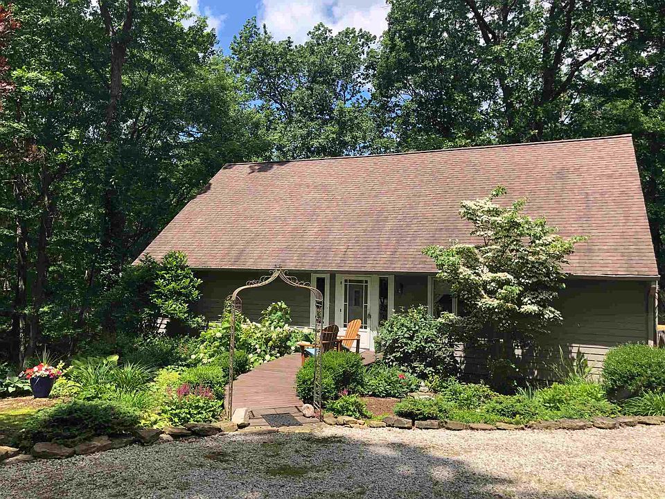 Southern Indiana charm with 20 acres! Lovely 20 minute ride from west side of Bloomington, to this cottage home surrounded by perennial gardens and woods for hiking, with a creek on the property. When you open the door you are welcomed with cathedral ceiling in the living room with marble front fireplace and large windows looking out into nature. The curves and arches in walls and windows add interest and charm. Enjoy quiet and privacy sitting on the back decks. The very spacious kitchen with lots of counter top work space invites all creative chefs and new flooring plus large pantry. Enjoy the comforts of the master on suite, it is fabulous! The master bath has marble finishes with a jetted garden tub for relaxing. The upper level has a extra large guest bedroom and a very large office or craft room, spread out! The basement with 9ft. ceilings has a large family room with a wood burning stove with plenty of room for a game table and the large guest bedroom hash access to a full bathroom. Plenty of room to spread out and two storage rooms. Extra special features: 9ft poured foundation, 2 decks, detached garage, central vacuum, wifi programmable remotely, generator auxillary for emergency back up. Lots of storage closets Very close to Crane.