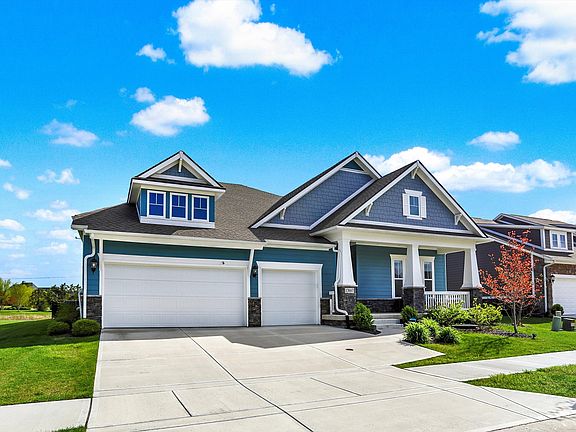 Beautiful 5 bed 4 full bath ranch with a full basement in a convenient Carmel location. This thoughtful David Weekley designed home offers all of the space you have been looking for. Walk through the front door and the engineered hardwood floors lead you to an expansive great room complete with soaring ceilings, a cozy fireplace, and oversized sliding glass doors leading to the huge covered patio bringing the outdoors in. The space is open to the kitchen making entertaining a breeze. Kitchen boasts beautiful cabinetry adorned with quartz counters. An oversized center island offers great prep space and seating space in the heart of the home. The buffet cabinet wraps into the combined dining area completing the space. French doors separate the office space from the primary living area offering privacy. Master suite will feel like a true retreat. A large walk-in shower and generous double vanity gives the space a grand feel. Custom California Closet organization finishes the closet perfectly. The split level floor plan offers a private guest suite with upgraded tile surround in the bath. The basement is set up perfectly for a media room, hobby space, exercise space, or whatever you may desire. Yet another private guest suite is located in the basement with tile surround. No shortage of storage and there is a rough-in for a wet bar. Premium lot with a fully fenced backyard overlooking the pond and great privacy. 3-car garage, radon system, backup sump pump, water softener, reverse osmosis, custom automated window shades, and more! You will not want to miss out!