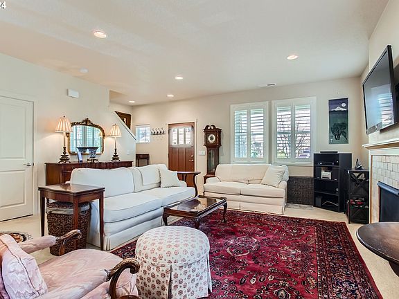 ***Open House, Sunday 2/23/25, 1pm-3pm*** Welcome to 13668 SW Sebastian Ln. a charming 3-bedroom, 2.5 bathroom home nestled in the peaceful Edgewater on the Tualatin neighborhood. This delightful property features a spacious covered front porch, inviting you into a great room with high-ceilings, a cozy gas fireplace with an abundance of natural light. The dining area and kitchen boast hardwood floors, while the kitchen itself is equipped with stainless steel appliances, new refrigerator, a built-in microwave, a disposal, and ample counter space for all your cooking needs. Step outside to an oversized fenced patio that offers the perfect outdoor space for gardening and entertaining. Professionally installed pavers, surrounded by mature shrubs and flowers, create a charming outdoor oasis.The primary suite impresses with vaulted ceilings, a walk-in closet, and an ensuite bathroom featuring a walk-in shower and double sinks. There are two additional bedrooms upstairs, also a linen closet and laundry area. The home is well insulated and quiet. The attached 2-car garage, accessible via an alley behind the home, adds practicality to this thoughtfully designed property. Ideally located, this home offers easy access to Highway 99 and is just minutes from the amenities of King City and Tigard. Additionally, King City Community Park is a short stroll from your front door, offering a fantastic playground and river access for outdoor enjoyment.