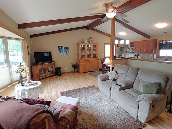 Beautiful open concept living, kitchen & dining with new kitchen! Wonderful cherry cabinets with soft close doors & drawers, built in eating area and granite countertops. Vaulted ceilings add to the great open feeling. 3 bedrooms on the main level. Large master bedroom with private 1/2 bath. Remodeled main floor bath. Huge 14 x 16 sunroom with brand new carpeting and electric fireplace for heat. Huge lower level family room. Many rooms have been freshly painted. Large den/office has huge walk-in closet and 3/4 en suite bath would be a great 4th bedroom with the addition of an egress window. 2 car garage with brand new roof.
