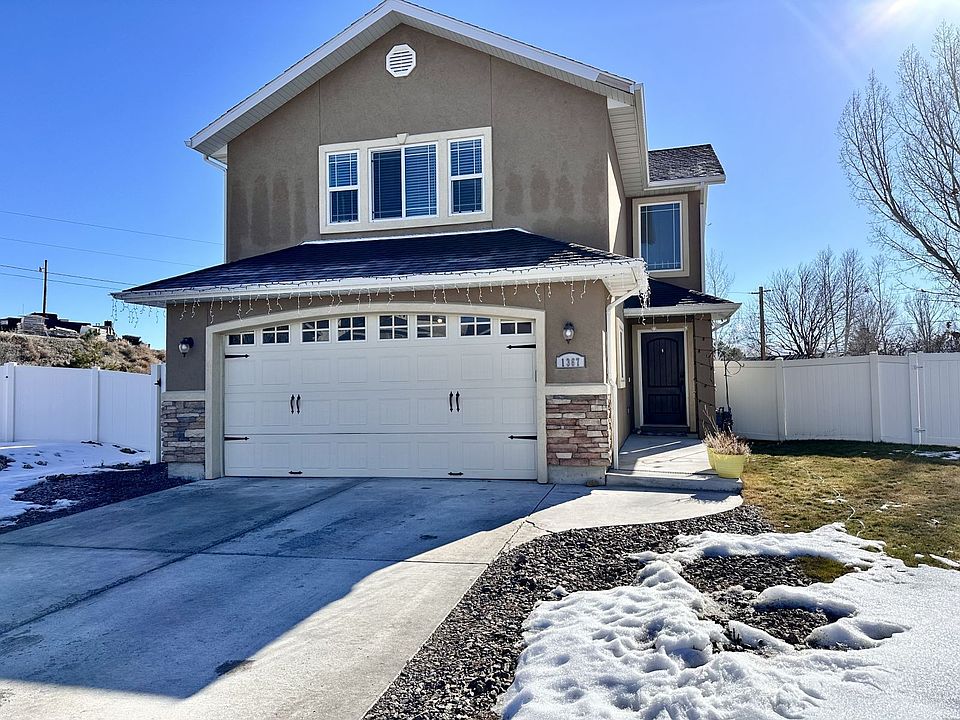 This stunning 3-bedroom, 2.5-bath home is a dream come true. Fully updated with granite countertops and wood cabinets throughout the kitchen & bathrooms, it boasts a modern and elegant feel. The kitchen also features brand new appliances, making cooking a breeze. The open concept design allows for seamless flow between the kitchen, dining area, and living room, which is enhanced by a cozy gas fireplace. Retreat to the spacious master bedroom with vaulted ceilings, creating an airy and luxurious ambiance. Additionally, the laundry room is conveniently located on the upper level, alongside all the bedrooms. Step outside and be amazed by the expansive yard, perfect for outdoor activities, on a generous 11,326 sq ft lot. The outdoor space also includes a patio and entry on both sides of the fence, providing convenience and versatility. Situated in a cul-de-sac, this home offers beautiful curb appeal with stucco on the front and a lovely array of shrubs and trees. The lawn is meticulously maintained with a sprinkler system, ensuring a lush and vibrant landscape. This home has it all " style, functionality, and a charming neighborhood setting.
