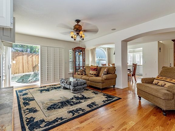 Stunning 2-story located at end of cul-de-sac on premium oversized lot! Open, inviting floorplan w/hdwd flooring in entry, dining rm, kit & family rm; wonderful design features include oversized arched doorways & clerestory windows for loads of natural light. Plantation shutters throughout! Home boasts light, bright kit w/vaulted ceiling & canned lighting, tile counter & backsplash, stove/oven, built-in micro, DW, side-by-side refrig, washer & dryer! Open to spacious dining rm w/butler's pantry, the kitchen/dining rm design helps make meal prep to presentation a breeze. Easy flow to family rm offers great connectivity in the living space! Family rm features gas fpl w/tile surround and media niches above the fpl that are nestled in build-in cabinets. Upper level hosts 2 bdrms & 2 baths to include beautiful master w/3 sided fireplace, retreat area and luxurious 5-piece bath. Fenced bk yd w/patio & deck! HOA includes access to 4 rec centers which all have indoor/outdoor & lap pools!