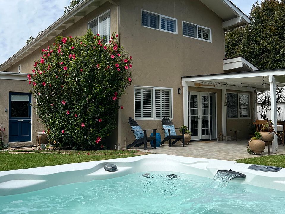 Location, location, location! Live walking distance to Butterfly Beach and Coast Village Road restaurants and shops in the coveted Montecito Union School District. Beautifully undated 3 bedroom 3 bath home has fenced in yard, wrap around patio, hot tub, and hot/cold outdoor shower. Located on a private lane, this contemporary home on the sunny side of a duplex will be the perfect place to call home this summer and for the year to come. The 1365 square week are beautifully designed for privacy in the bedrooms and an open concept kitchen and living room. The kitchen is appointed with stainless steal appliances, large farmhouse sink, marble countertops, cozy breakfast nook, and marble breakfast counter. The bathrooms are newly remolded with travertine floors and subway tile showers. The primary en-suite bedroom has vaulted ceiling, skylight and marble open shower. Bonus room has big screen tv and dutch door. Cable, Wi-Fi, trash, hot tub maintenance and gardener included. All adult tenants must have excellent credit. First, last and security deposit required. Renters pay water and electricity. Month to month lease or year long lease available. Off street parking available.