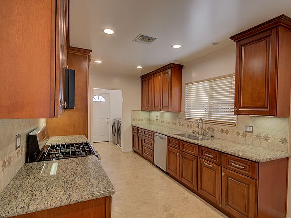 Step into comfort and convenience with this beautifully maintained, freshly painted 1,664 sq. ft. single-story main home. Featuring 3 spacious bedrooms and 2.5 bathrooms, this home offers a functional layout designed for everyday living. Enjoy modern touches throughout, including energy-efficient LED lighting and stylish wood-look flooring and tile no carpet anywhere. A dedicated laundry room with washer and dryer adds to the home's practicality. The spacious kitchen is a standout feature, showcasing sleek stainless steel appliances including a refrigerator and microwave an elegant undermount sink, and generous counter space for meal prep. A cozy breakfast area off the kitchen adds to the home's warm, inviting flow. The primary suite offers a relaxing retreat with a private en-suite bath featuring a separate shower and luxurious jetted soaking tub. A full second bathroom and a convenient guest restroom make hosting family and friends effortless. Step outside to enjoy a welcoming patio area complete with a table, chairs, and a built-in BBQ ideal for outdoor dining or entertaining. While the garage on the property is not part of this lease, a backyard shed is available for the renter's use, offering convenient space for storage. Please note: the home includes an Accessory Dwelling Unit (ADU) located at the back of the property, which is separately rented and has its own private entrance, ensuring comfort and privacy for both residences. With its thoughtful design, modern updates, and move-in-ready condition, this home perfectly blends comfort, functionality, and style all on one level. Landlord pays for landscaper. All utilities paid by tenant and tenant is also required to obtain renter's insurance.