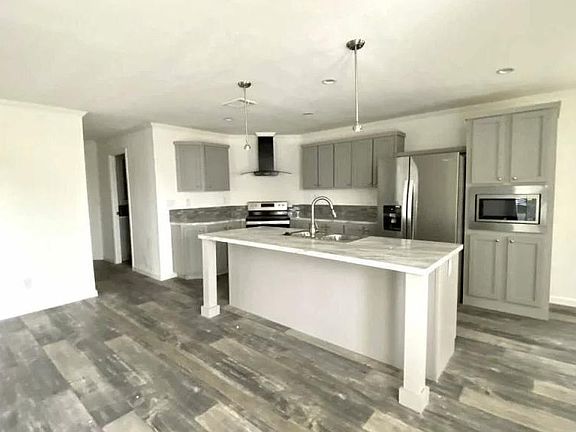 Sneak preview of a new doublewide 3 bed 2 bath home with carport that we plan to bring into the community. Open concept living at its best! Porch front entry, with modern kitchen look. Great for family or retiree. Use a bedroom as an office, or keep as guest room! A quiet, clean community. Renter also pays for water, sewer, trash, which totals to about $85-90/mo