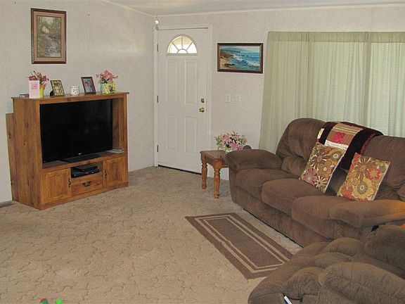 This converted manufactured home in Panther Valley offers an open and bright floorplan with 3 bedrooms and 2 bathrooms, and sits on an 8-point foundation. Exterior has RV parking, covered parking, covered front patio, and easy to maintain rock landscaping. Master suite includes walk-in closet, ceiling fan, and shower/tub combo. Home also has a vivint home security system installed.