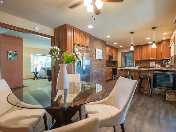 Wonderful single level home on oversized lot. Open remodeled gourmet kitchen complete with wine cooler, stainless appliance and custom cabinets. Cozy living room with fireplace and bay window overlooking a large private landscaped yard. Remodeled bath with custom tile and more. Newer driveway, walkways, treks deck, and covered patio. This home has a fully fenced yard with garden boxes, added faucets in the back of the property and firewood that stays. On demand hot water heater and many ADA extras add to this home. The office (3rd bedroom) has built-in desks for a perfect home office. Walk to the river from this location. Canby has so much to offer! Open Saturday and , June 29, 12 - 3.