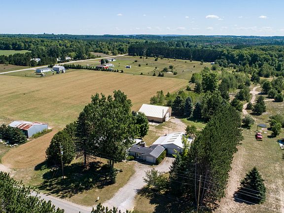 NEVER HAVE TO LEAVE HOME WITH THE OUTBUILDINGS INCLUDED WITH THIS FAMILY HOME!! Spacious 3,200 sq.ft home with (3) bedrooms, (2) baths and large living room and country kitchen. Living expanded with breezeway and sun room. Country style setting allows for heated attached garage and expanded with attached 30'x40' outbuilding ideal for additional uses. Add to this a 32' x 48' heated and finished outbuilding including work areas, optional floor hoist and accessories for a true man cave. All buildings are heated with wood boiler-house also has forced air furnace with optional gas heat. All this just minutes to town from convenient N. Townline location. Move in ready for IMMEDIATE OCCUPANCY!!