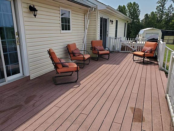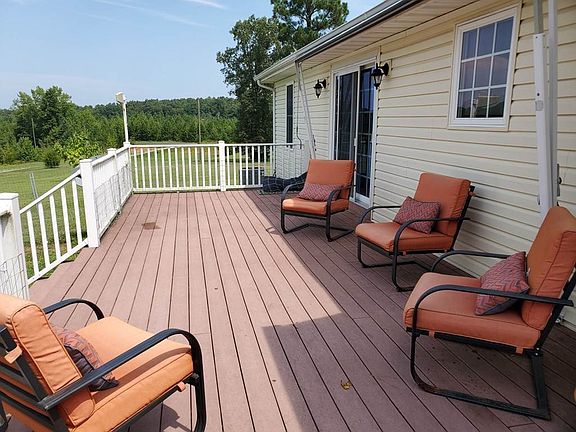 Custom built house with an open floor plan. The kitchen has a nice island with bar and lots of cabinet space. Living area has built in book shelves and gas log fireplace. The master bedroom is so spacious with a LARGE walk in closet and attached master bathroom. French doors leading to a deck and hot tub (hot tub sold separately). Deck has awning for those hot days! Attached one car garage. Pull down attic for storage. Workshop and 2 sheds all connected with electrical. House sits on a knoll. Beautiful setting. Four acres of mostly open land!
