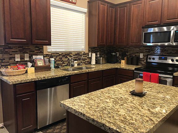 - Kitchen Features: Kitchen Island, Dishwasher, Disposal, Refrigerator, Pantry, Granite Countertops, Built-in Microwave, Range/Oven Elec