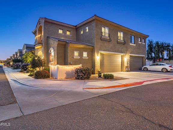 This 3 bed, 2.5 bath Townhouse built in 2017 is waiting for you in growing Mesa! Gated Community on a corner lot in a quiet cul-de-sac. No details were missed on this stunning home, Norman Plantation shutters on every window and include sliding door off owners suite leading to balcony. Pull out sliding shelves (4) in island in kitchen (6) in owners suite, main floor has 20 inch tile throughout, upgraded lighting throughout, Hunter ceiling fan with remote in living room. Kitchen has granite counter tops, Frigidaire Gallery microwave dishwasher and stove, raised panel cabinets are upgraded throughout with self closing drawers with Allen & Roth cabinet pulls on all cabinets and drawers. Extra storage on pantry door.
