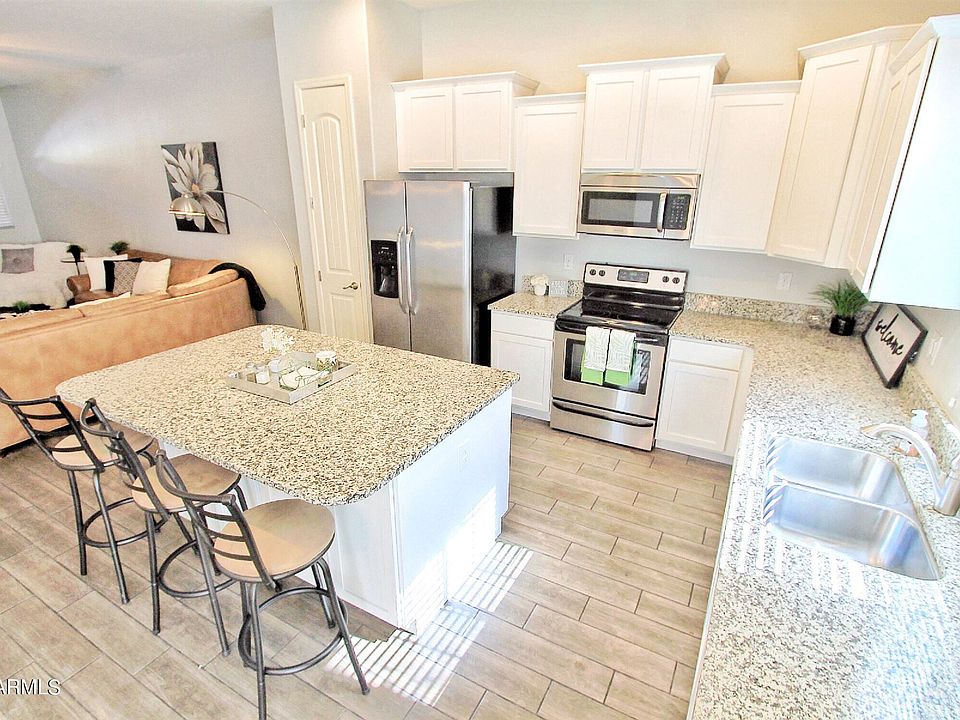 Feel like you live in a Resort! Beautiful Townhome in gated Community. Features include 4BR/2.5BA, Vaulted ceilings, Open floorplan in main living space. Kitchen has granite counters, SS Appliances, prep island & breakfast bar. Neutral plank flooring throughout the main level. Upstairs Master BR has sliders to a private deck, double sinks, full walk in shower. Laundry is also upstairs with the bedrooms. Gated front entrance opens to courtyard, great for private gatherings. Community has a clubhouse, fitness center, 2 Olympic size pools, Spa & BBQ areas.