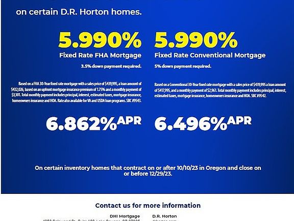 5.990% special interest rate available on certain new inventory homes with preferred lender and closing cost credit of $8,000. Horton's newest community, Hazelnut Glen! Our 1-level Cali floor plan has 4 bedrooms with an open kitchen that is gourmet featuring stainless steel appliances, gas range, white cabinets and quartz countertops. Cul de sac location. Front and backyard landscaping and irrigation included. Meet at model for showing. 580 SE Stafrin St, Dallas, OR 97338. Pics of like home. September closing date!