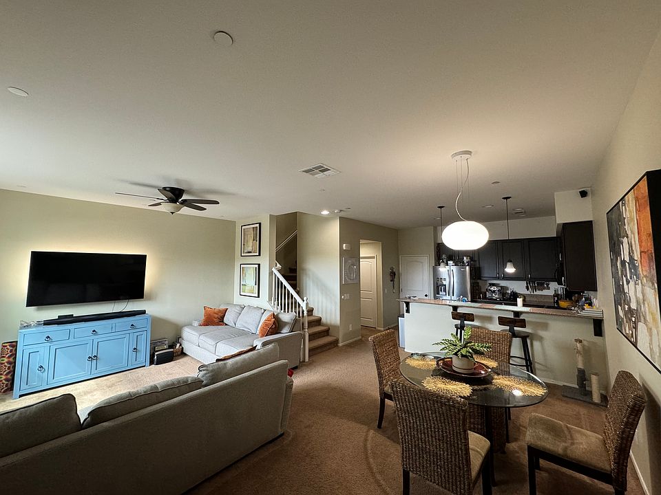 If you're a working professional seeking a peaceful home with extra privacy, we have a spacious, furnished bedroom available on the third floor of our townhouse. This bright, inviting room comes with a private bathroom for your exclusive use. Rent is $1,225 per month, plus utilities, and includes a regular cleaning service for all shared areas, so you can enjoy a tidy and stress-free environment. The room is fully furnished with a bed frame (optional), side tables, a dresser, and even a mini fridge for added convenience. You'll also have full access to the laundry room and well-equipped kitchen. We can also designate some plates/bowls/utensils for your use. Our home is designed to be a quiet retreat, perfect for someone who appreciates a calm and clean environment. Montecito is a safe, well-lit neighborhood with plenty of street parking and excellent amenities, such as a community pool, fitness center, walking trails, and courts for basketball and tennis. There are also parks nearby, and the location offers easy access to the 805 and 125 freeways, as well as shopping centers and schools. We have a friendly dog and a cat in our home, so we're unable to accept additional pets. A security deposit equivalent to one month's rent is required. If you're searching for a private, comfortable space to call home, we'd love to connect with you! Renter responsible for their share of Electricity/Gas, internet, and water. Owner responsible for Trash. Semi regular cleaning service provided in common areas by owner. No smoking inside. Cannot accommodate pets.