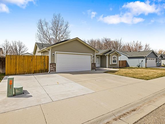 Adorable single level home with a spacious, open floor plan located in a great Kuna neighborhood. Split bedroom floorplan with vaulted ceilings in the living area, dual vanities in master bath and walk-in master closet. Large backyard is fully fenced and equipped with pressurized irrigation, large covered patio and huge utility shed with power that could be used as an office or man cave! This home has a new HVAC system as of 2020, Solar installed in 2021 and new siding in 2022!