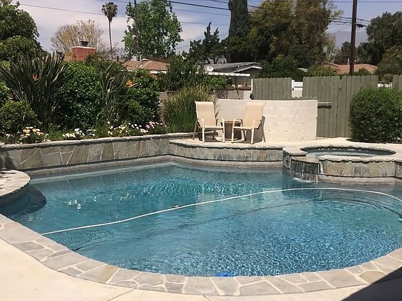 Single Story with Gorgeous Pool Home with Solar Panels!! - This lovely home is approximately 1900' and includes 3 bedrooms and 2 bathrooms and a 2-car garage. The home has a sparkling pool, spa and beautiful landscape. The home features kitchen with granite counters, stainless steel appliances, (refrigerator on premises is for tenants use but will not be replaced or repaired) abundant cherry wood cabinets, large living room with fireplace, and a huge family room which leads to the backyard, covered patio and spa. There are 2 sheds on the property however only 1 shed is available for tenants use.This home has a lot of charm and character and must be seen to be appreciated. The home has solar panels so the tenant will not have an electricity bill! Pool and gardening service included. No pets allowed and no smoking. Tenant must carry renter's insurance for the duration of tenancy and must provide a copy of the policy when signing the lease. No Cats Allowed (RLNE4045253)