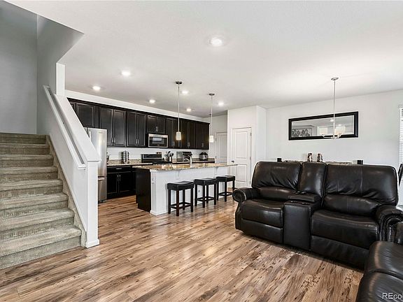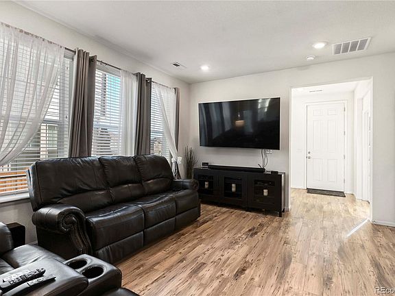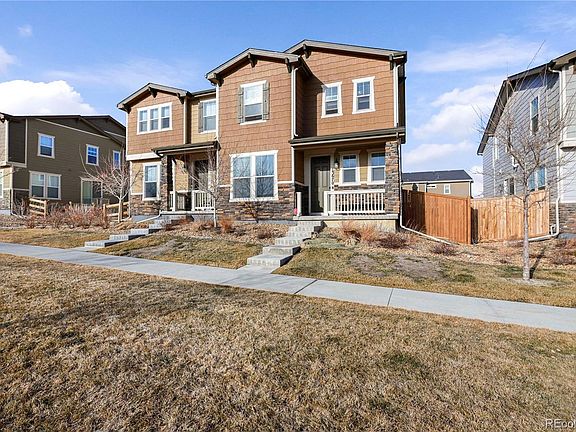 Fantastic End Unit Townhome facing community park and open area! The well laid out floorplan allows you to enjoy everything in one space for convenient entertaining. The main floor features luxury flooring throughout, a bright open great room with family room, dining area and opens to the kitchen with a large center island with room for seating, pendant lighting, granite counters, pantry, 5 burner gas stove and stainless steel appliances! You also have a main floor office with French Doors, perfect for an additional bedroom if needed. The loft on the upper level provides a perfect space for an additional living room area, play area or anything that is needed. Enjoy your primary bedroom with walk-in closet and full bathroom with double sinks and a tub/shower combination. The upper level continues with two additional good size bedrooms, full bathroom and laundry room with linen closet. Literally the perfect location, facing the community park/open space and giving you access to the community trails, other nearby parks and tucked away in the neighborhood. Everything you need close by including several options for shopping, restaurants, Denver Premium Outlets, Orchard Town Center, Tail Winds Rec Center and park, Thorncreek Golf Course and much more! Close to the East Lake Light Rail station and major routes for convenient and easy commuting to Denver, DIA and Boulder. Don’t miss out on this perfectly appointed Townhome in a great location!