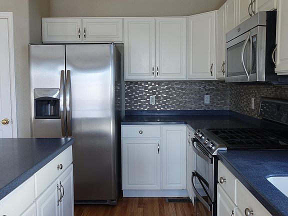 Rent one of the best views in all of Thornton for your whole family! This 5 bedroom/4 bathroom/3-car home is in the lovely Cherrywood Park neighborhood with a shopping center a few blocks east and I-25 is 2 minutes away! Nestled on some of the highest parts of Thornton the view from the deck and master bedroom will greet you every morning and evening. This home has a formal dining room as you enter the home with over 1000 sq ft of professionally refinished hardwood on the main level. Around the corner the grand kitchen with large island will make entertaining a breeze. A built-in eating area is large enough for an 8-person table. Three steps down you are able to sit in the Family Room with gas fireplace and access to the Guest Bedroom bathroom laundry garage and basement. The 3-car garage is wired for 240V and has full shop lighting. From the kitchen take some steps up to the landing where the second full bathroom is shared by the two bedrooms on the left. Both bedrooms have ceiling fans installed to help circulation. Take a right and you land in your master bedroom with crown molding and ceiling fan. The 5-piece master bath has ceramic tile on the floor with carpet in the closet. Cedar planks and custom closet organizer are built into it. Walking down the stairs to the finished basement you end up in the grand room where enough room for a pool table theater or just a big play area is available. Next to this area is a large bedroom with closet including a large garden level egress window. House is plumbed with a whole house filter and water softener. All appliances are included with the home. Tenant pays water and electric/gas bill. Tenant responsible to lawn maintenance and snow removal from sidewalk/driveway. No smoking permitted. No pets allowed.