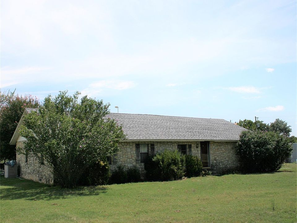 Beautiful fenced 70 acres perfect for your livestock! 3 water aquifers and water rights being sold w/property. This stone home has 4 bed, 1.5 baths & 2112sf. 2 storage buildings.