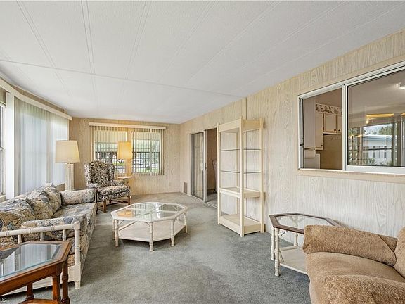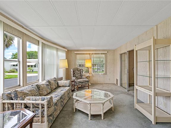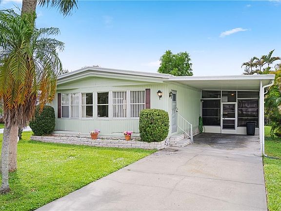 Welcome to Sunshine Mobile Village. WITH A NEWLY INSTALLED AC UNIT (less than a week old), this expansive 2 bedroom, 2 bathroom manufactured home sits in once of the most sought after locations in Southwest Florida. Less than 7 miles from our world famous Sanibel beaches and within walking distance to some of the best shopping around, you're close to everything! The home itself, constructed in 1979, offers one of the most popular layouts in the development. With an open living space, large bedrooms, and a gorgeous lanai, this floor plan lives very comfortably. Very well maintained this home shows tons of potential. With low HOA fees and beautiful amenities including a pool, shuffle board courts, and a community center with events and gatherings regularly, you'll love the lifestyle offered here!