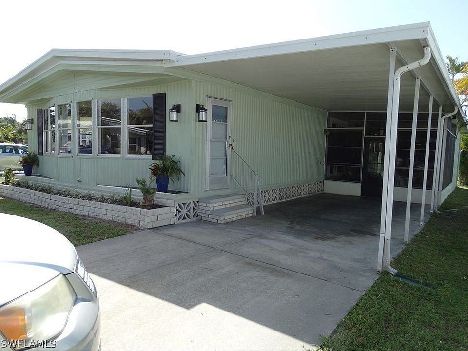 WELCOME TO SUNSHINE MOBILE VILLAGE1 MUST SEE TO BELIEVE. THIS IS AN EXPANSIVE 2 BEDROOM, 2 BATHROOM, MANUFACTURED HOME THAT SITS IN ONE OF THE MOST SOUGHT AFTER LOCATIONS IN SOUTHWEST FLORIDA. ONLY 7 MILES TO THE SANIBEL ISLAND BEACHES. CLOSE TO EVERYTHING INCLUDING OUTLET MALL, GROCERY, FITNESS CENTERS. LOW HOA FEES WITH BEAUTIFUL AMENITIES INCLUDING POOL,SHUFFLE BOARD COURTS, AND A COMMUNITY CENTER. NEW KITCHEN WITH ISLAND, NEW SOLID WOOD FLOORING, BATH CABINETS, AND THE AC AND WATER HEATER ARE LESS THAN A YEAR OLD. LARGE MASTER BEDROOM WITH WALK IN CLOSET, EVEN GUEST BEDROOM HAS A WALK IN CLOSET.