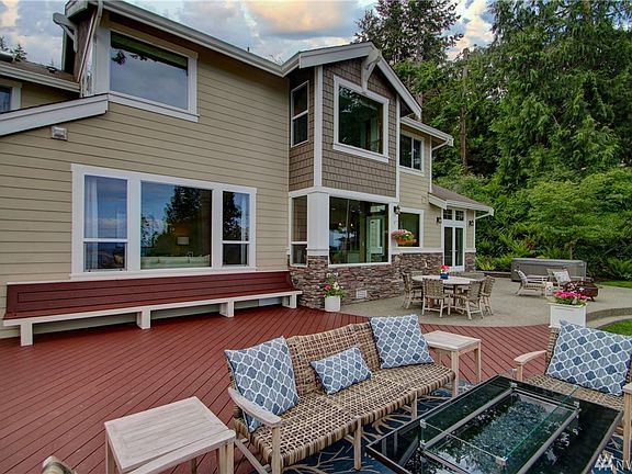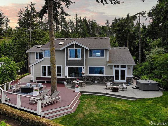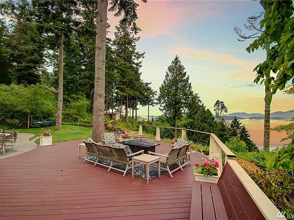 Don't miss this opportunity to own a full acre waterfront compound of 2 properties with views and sunsets galore. Air BNB the one property or just have a complete separate private guest house and studio with 2 car garage for the in-laws and live in the beautiful custom 3 thousand sqft main home both with access to Del Mar private beaches and moorage for your boat. Beautiful new rock fire pit and new sports court. Each property has separate entrance on different streets. Gorgeous landscape.