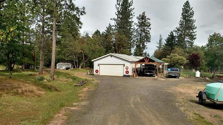 2002 Liberty double wide Super Good Sense manufactured home on 11.45 acres (2 tax lots) of oak, madrone, manzanita & fruit trees. Home certification #909134726 on foundation. Kitchen includes propane range/oven with 100 gallon propane tank. Home includes 3 bedrooms, 2 baths, 2 living rooms, breakfast nook, island in kitchen, pantry and microwave. Fireplace for cool evenings. Fenced yard with grass, deck, beautiful flowers & night lighting. 2 car garage/shop. RV parking with water & electricity. Water system with 4200 gal water tanks & water delivery. Sit on the deck and see beautiful sunrises, sunsets, turkey, deer in your private get away. Cash Sale Only.