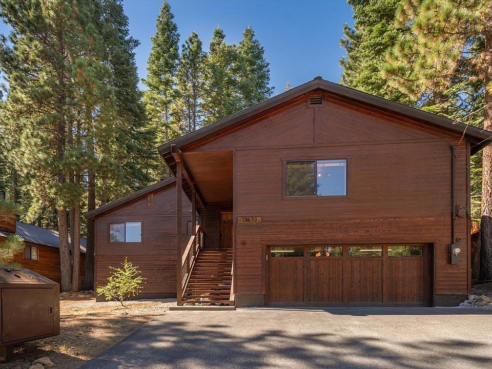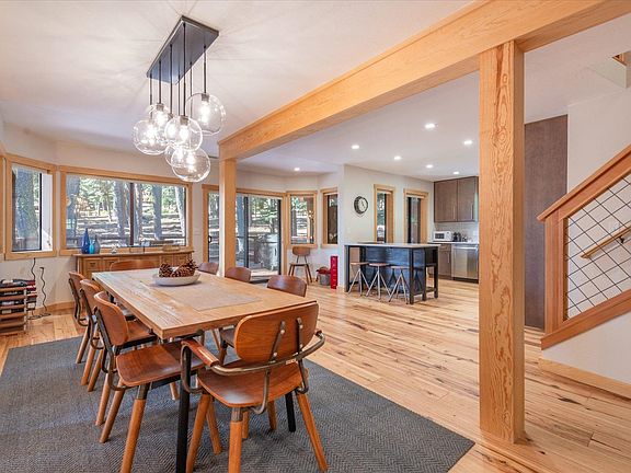 This open, impeccable home elegantly combines contemporary style with the warmth of the mountains. The living area features an impressive floor-to-ceiling fireplace crafted from cold-rolled steel, high ceilings, rich wood accents, and a wall of expansive windows that flood the space with natural light. The seamless flow of hickory flooring connects the inviting living and dining areas to the modern kitchen, creating an enjoyable gathering space perfect for entertaining family and friends. Extensively remodeled with a comfortable floor plan, this home spans 2,438+/-square feet and features three bedrooms and three bathrooms on the main floor, with two of the bedrooms having en-suite bathrooms and the third an en-suite option. A generously sized loft overlooks the great room, providing an ideal retreat for watching movies, engaging in games, or simply unwinding. Additionally, French doors lead to a versatile office space that can easily transform into a fourth bedroom. Step outside onto the recently rebuilt deck that stretches into the forest, providing the perfect natural setting for socializing with family and friends. Located in lower Tahoe Donner, this tastefully furnished turnkey home is easily accessible in winter and only steps from trail access. Enjoy the athletic center, tennis, dining, skiing, and all the Tahoe Donner amenities just minutes away.