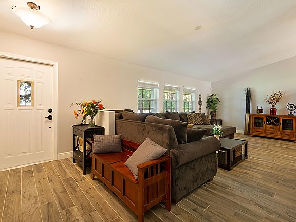 Remodeled to perfection this CBS constructed four bedroom two bath country home is situated on a 1.3 acre fully fenced corner lot! Features include the gourmet kitchen with soft close doors and drawers, granite counter tops, glass tile backsplash, gas stove and a smart refrigerator, striking wood look tile floors throughout the entire home, upgraded baseboards, remodeled bathrooms, cathedral ceilings, whole house reverse osmosis system with a 1000 gallon holding tank, newer A/C, fireplace, walk-in closets in all four bedrooms. Imagine spending time relaxing on the spacious covered back porch which looks over the screened-in pool and spa with a salt water chlorinator and gas heater, storage shed, hen house (hens included) and a separate well for the sprinkler system.