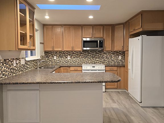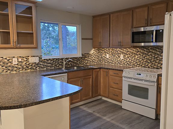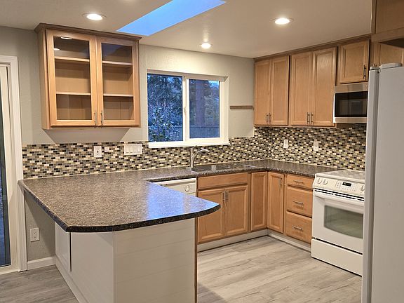 Newly renovated and upgraded ranch-style single-family home located on a quiet dead-end street, just a 5-minute walk from the Nike campus. This home offers peaceful suburban living with quick access to shopping, dining, and major employers. Cedar Hills Crossing and the Beaverton Transit Center are both within a 5-minute drive, and Highways 26 and 217 are easily accessible. Inside, you'll find an open-concept living and dining area with large windows and skylights that fill the space with natural light. The kitchen features updated appliances and custom cabinetry. Each bedroom offers ample closet space and the primary bedroom includes its own bathroom. You will find hardwood, laminate and updated luxury vinyl flooring throughout. The expansive, fully fenced backyard provides a perfect retreat with mature trees, a covered patio, and plenty of space for gardening or entertaining. Parking is plentiful, with a two-car garage and additional space in the driveway. Note: Rent is $2,500 plus $300 monthly for professional yard maintenance (Total rent per month $2,800). Renter responsible for all utilities (Electricity, Gas, Water, Garbage, Phone and Internet). First month rent and security deposit required at signing. Next month's rent fees due on the first of each month. Minimum one year lease. Available immediately.