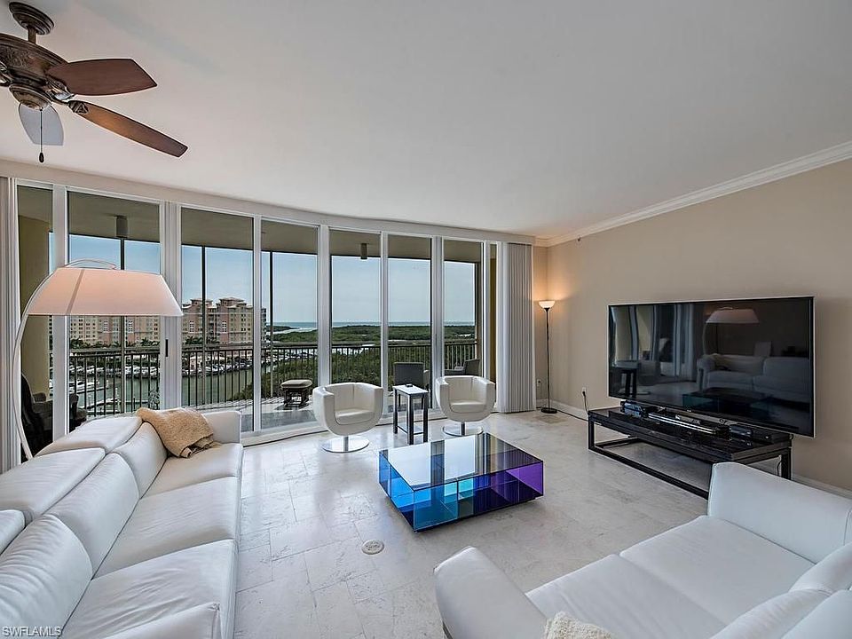 C.12432 Beautifully finished home with wonderful attention to detail. This southwesterly facing unit has lovely views of the yacht harbor, Wiggins Pass and the Gulf of Mexico. Decorated for style, elegance and comfort, this 4BR+Den/5BA unit lives very comfortably with over 3500 sq ft of under air living space. Upgrades are numerous and include: brushed Crema Bella marble flooring, Snaidero Italian Cabinets, Wolf 5-burner gas cooktop, subzero refrigerator and much more. AQUA at Pelican Isle offers an exceptional value & the coveted Naples lifestyle with resort style amenities that include: on-site concierge, a private marina, grand social room, library, private theater and fitness center along with spa treatment rooms. The unparalleled Sky Lounge offers a social room and bar, an open sun terrace with grill & hot tub - all with breathtaking views of the Gulf of Mexico.