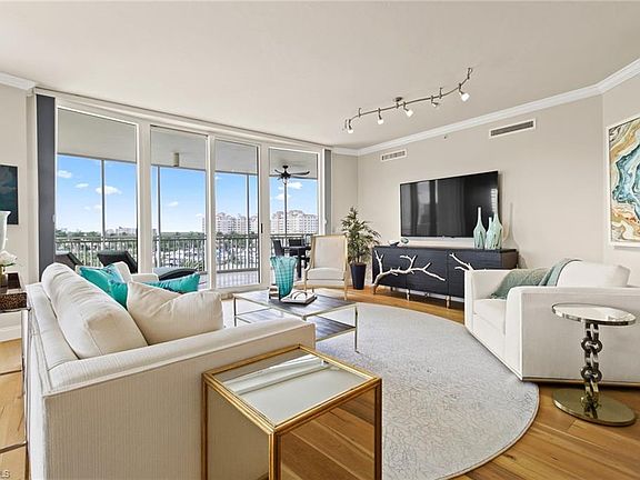Come enjoy captivating water views of Wiggins Pass, the Gulf of Mexico, and the private marinas from this sixth-floor end unit in beautiful Aqua at Pelican Isle. This residence is light and bright with an open floor plan, perfect for entertaining your family and friends. Watch boats come and go from the marina and catch the colorful sunsets from your southwestern facing lanai. The spacious main bedroom boasts expansive western views of the Gulf of Mexico. Both guest rooms offer comfortable spaces and have en suite bathrooms. This low density building offers many amenities such as full-time concierges, private marina, fitness center with yoga room, movie theater, sky lounge, social rooms, and private guest suites . Aqua has something for everyone. Whether you want to relax under a cabana at the pool, or work on your swing at the virtual golf simulator, you have it all at Aqua.