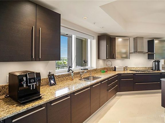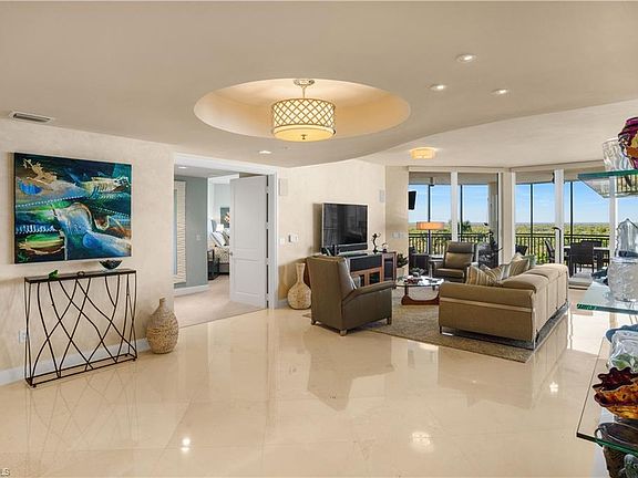 Gorgeous, spacious & pristine! 3 ensuites + den contained in almost 4000 square feet of living space w/9' ceilings & elegant neutral decor. Soak in views through walls of glass or relax on gorgeous wrap around lanais overlooking mangroves, the Gulf & private marina. Marble & carpeted floors, Snaidero cabinetry, Subzero & Wolf appliances are just a few of this home's fine features. This boutique community of only 48 residences offers peace & privacy away from crowds in a recently built, but newly redecorated & meticulously maintained building with private theater, fitness & spa center, guest suites, sky lounge, social rooms, library, pool & cabanas, firepit, putting green, simulated golf & more. Extras include an upgraded Lutron lighting system, security system with remote access, elevator opening directly into the residence, 2 parking spaces & 24 hour front desk security w/concierge level service. Aqua is the perfect opportunity to explore marine interests, with a Yacht Club just next door & a private marina in your back yard. Aqua's North Naples location makes it conveniently accessible to shopping, dining & Mercato--not to mention the straight shot to downtown. Truly unrivaled.