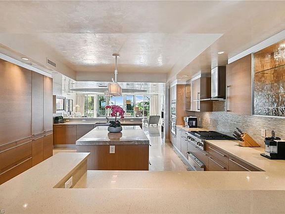 Welcome to the rarely available waterfront retreat at Unit 508 in the prestigious Aqua building. This exquisite residence invites you into a world of design-inspired elegance and sophistication. This unit is one of the best floor plans in the Aqua building. With three beds, 3.5 baths it's one of the largest condominiums with a view in Naples for the price! The interior boasts a design-inspired decor that harmonizes seamlessly with serene coastal surroundings. Custom paint throughout the space creates an inviting ambiance. Complete with Viking and Wolf Appliances, a 2.5-inch-thick quartzite island, marble flooring, butler’s pantry, family room and living room, private elevator entrance, beautiful views with two balconies on either side, and a large dual bath, this is a rare gem and entertainer’s dream. The Aqua building itself is a testament to architectural brilliance and offers an array of amenities that complement the upscale lifestyle, including a ferry to and from the beach from Pelican Isle Yacht Club, boat slips, cabanas, a resort pool and grill, theater room, club room, golf simulator and game room, guest suites for guests, two dog fields and a fitness center.