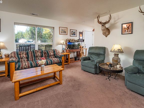 This 2088SF home offers that private setting you've been looking for! Nestled on 3.23 treed acres (Two (2) separate tax lots), open floor plan, living & family rooms, spacious kitchen w/ island, 4 bedrooms, 2 full baths, laundry/mud room, new pellet stove, 4 car garage w/ drive-thru, deck, covered front porch. 20x40 RV Carport/Hookup, Hot Tub w/ gazebo enclosure, in-ground sprinkler w/ timer, water feature, graveled circular drive way. Newer Mitsubishi heat pump, water heater.