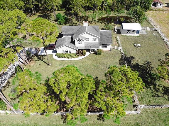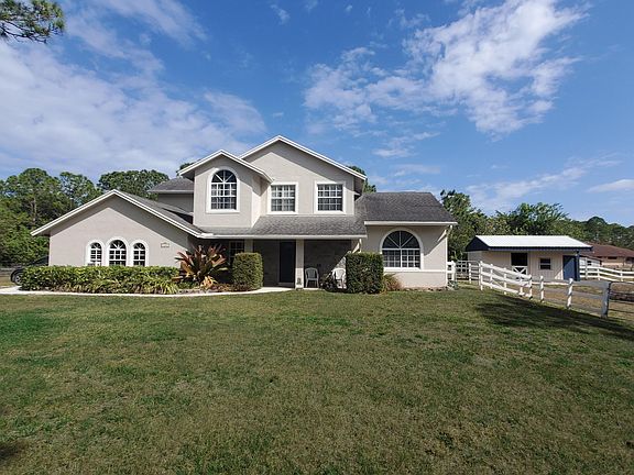 Private home, over an acre lot on a dead end road, NO HOA. Prime location that's quiet but close to the city and freeway. High ceilings in the living room, filled with natural light and a fireplace. Large first floor master bedroom plenty of closet space. Eat in kitchen. Garage has been converted to an amazing bonus space perfect for a pool table, play area, office or den, could be converted back to under air garage also. Second bedroom on the first floor also with a large walk in closet. 2 spacious bedrooms on the second floor that share a large full bath. This is one of the best floorplans in the Acreage. Screened in patio. This is perfect for horse owners with it's own barn including a horse stall and tack/feed room, could also be a great workshop! New 2 zone A/C.
